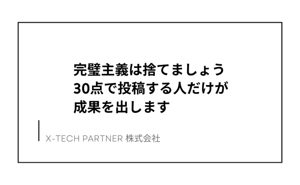 完璧主義は捨てましょう。30点で投稿する人だけが成果を出します